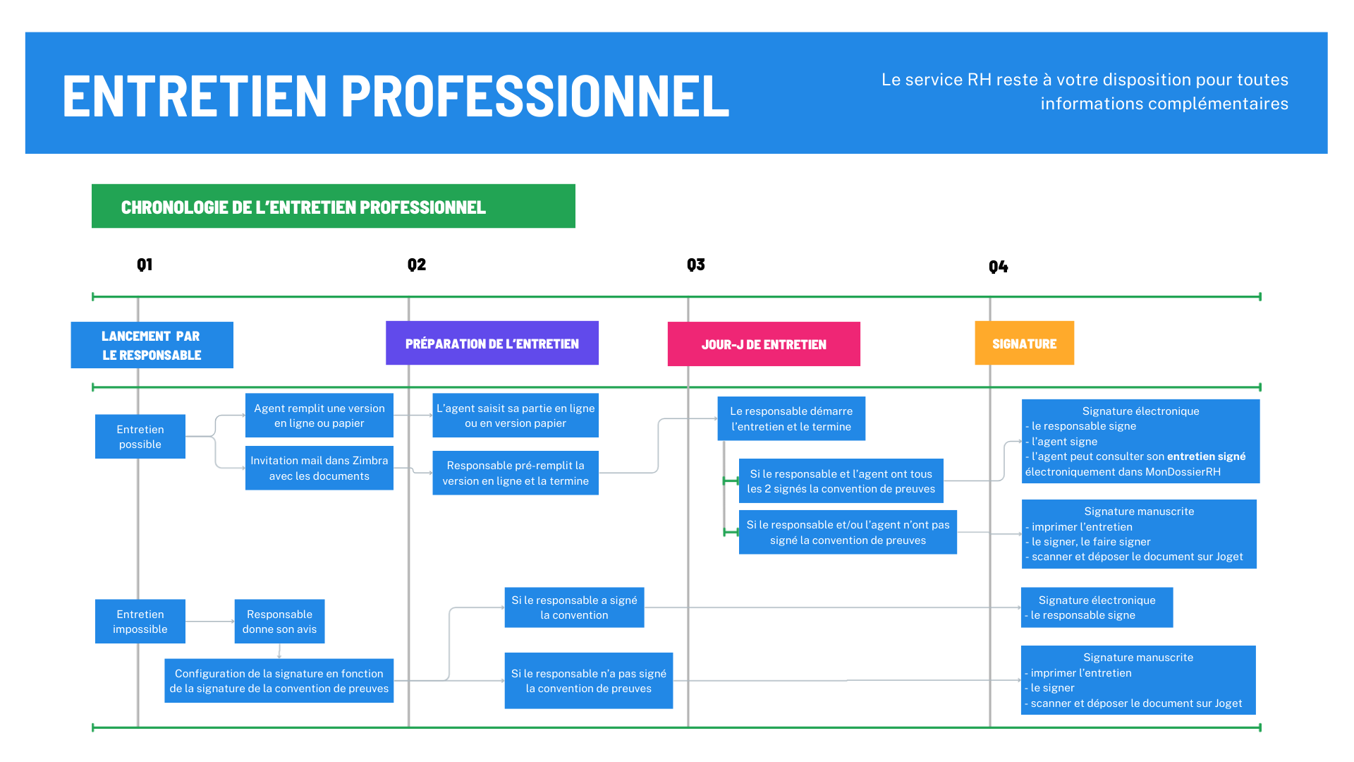 Si la signature électronique n'est pas effectuée dans les 15 jours après l'entretien, il faudra imprimer le compte-rendu d’entretien professionnel et signer de manière manuscrite (évaluateur et agent évalué) puis il faudra transmettre ce document par courrier interne à la DRH.