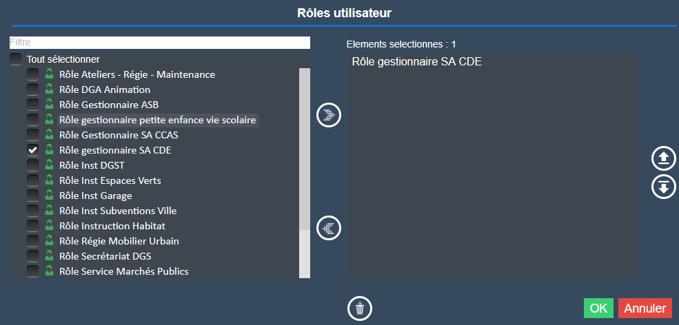 Selon les besoins pour le profil de la personne on lui associe les rôles secondaires (il s'agit de pouvoir agir pour un autre service que l'entité à laquelle l'utilisateur a été rattaché).