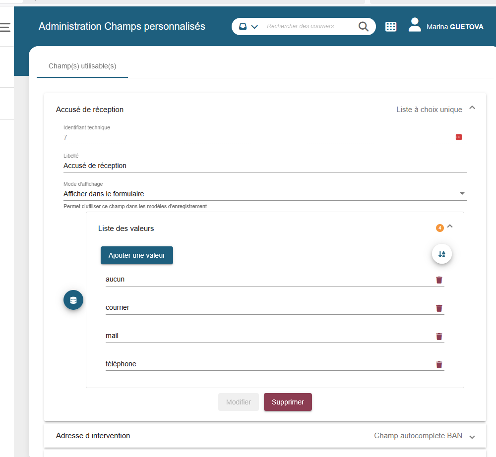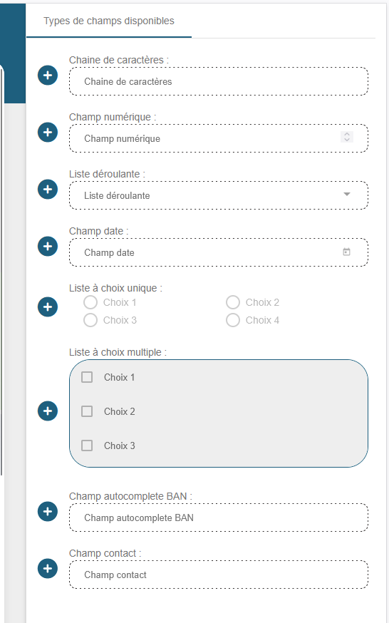 cliquer sur le + du type de champ que vous souhaitez ajouter :