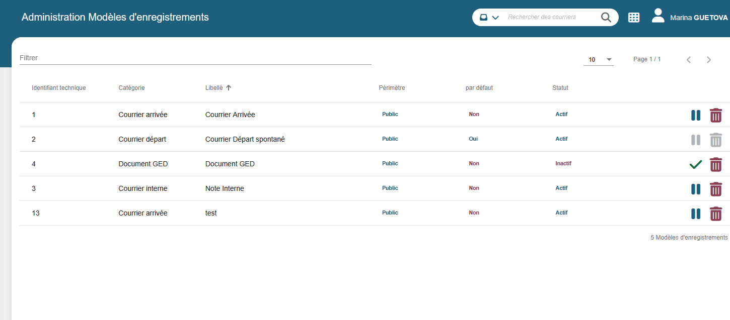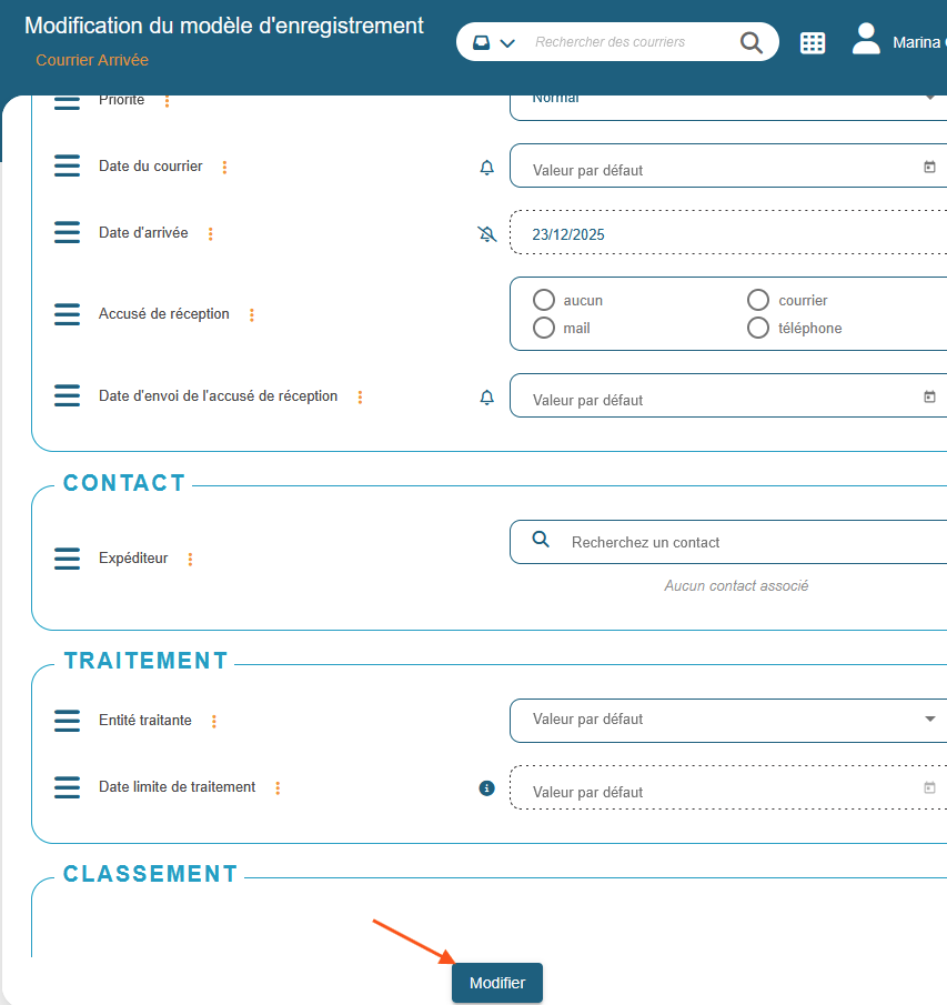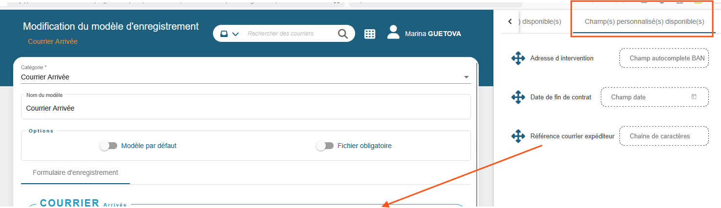 Administration > Modèles d'enregistrement : choisir le formulaire